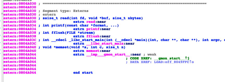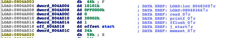 然后通过格式化字符串漏洞leak出内存中的bin文,默认加载地址(no pie)32位0x8048000(64位0x400000).